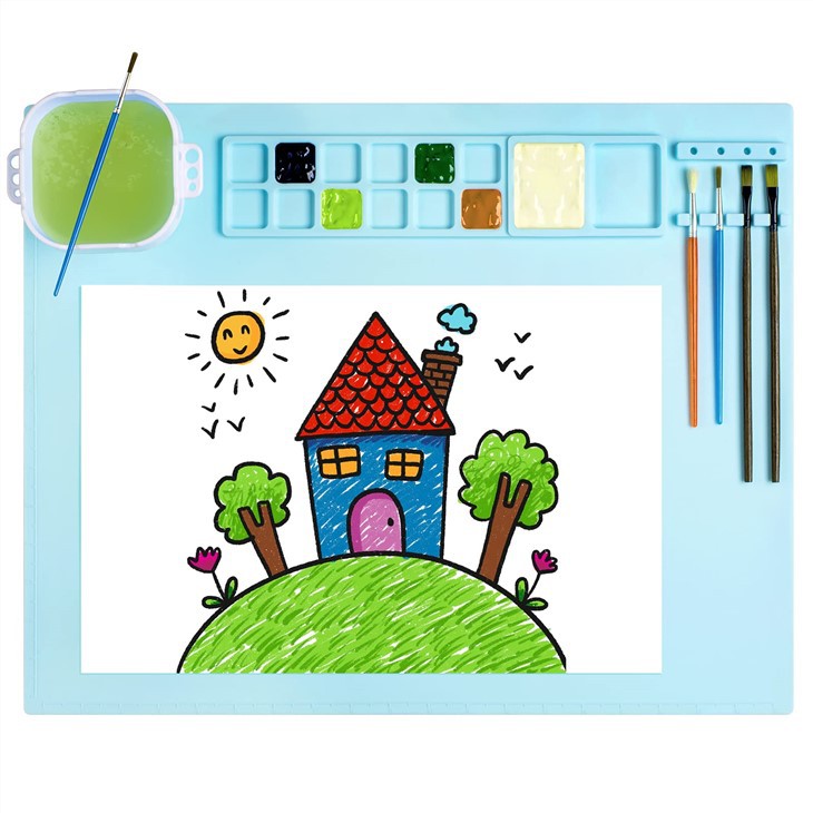 3. Qhov no kho tshiab silicone kos duab lev nta ob loj xim puag ncig cov tais rau kev sib tov zoo, lub khob txhuam txhuam txhuam, thiab muaj peev xwm siv tau los ua cov xim palette thiab pallet. Qhov no silicone creator lev muaj cov nplais ntawm sab laug thiab hauv qab uas yog cov tswv yim ntau dua rau koj cov khoom siv kos duab.